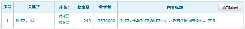 網站名稱:廣州錦秀儀器有限公司網址:http://www.dpsicgz.com關鍵詞:抽濕機服務類型:免費關鍵詞在百度排名數據: