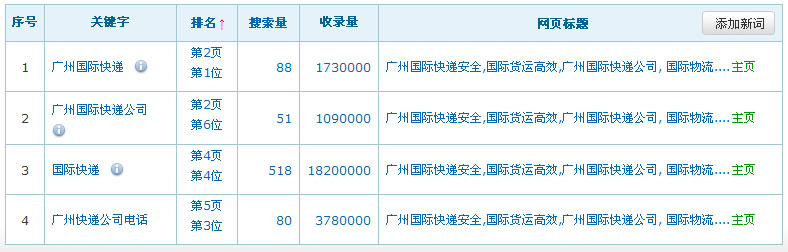 網(wǎng)站名稱:廣州中美國際貨運代理網(wǎng)址:http://www.020post.com關(guān)鍵詞:廣州國際快遞、廣州國際快遞公司、國際快遞服務類型:免費關(guān)鍵詞在百度排名數(shù)據(jù):(暫時只列出百度的排名數(shù)據(jù),其它搜索引擎的排名效果暫不列出)